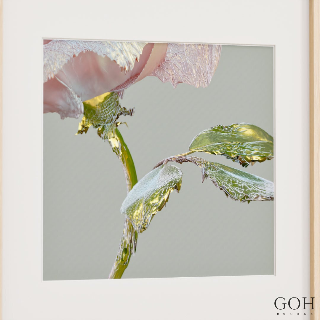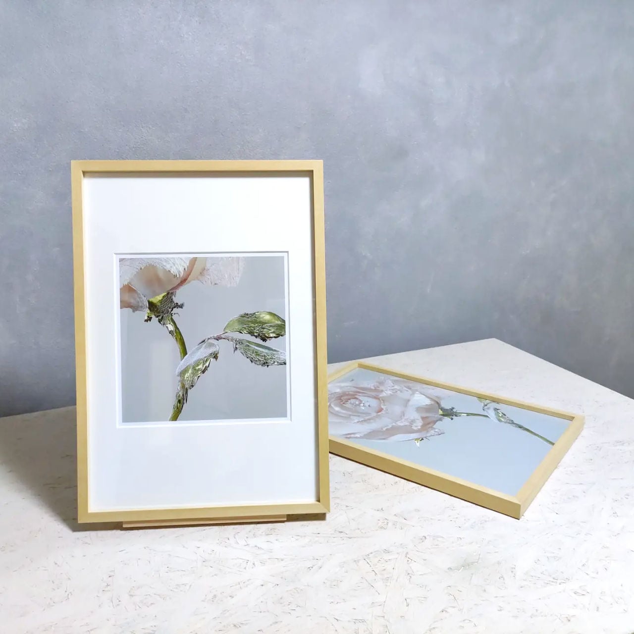 ROSE ONE - No.001, Natural, Side A / 額装済みの薔薇のオリジナルアートプリント、原画