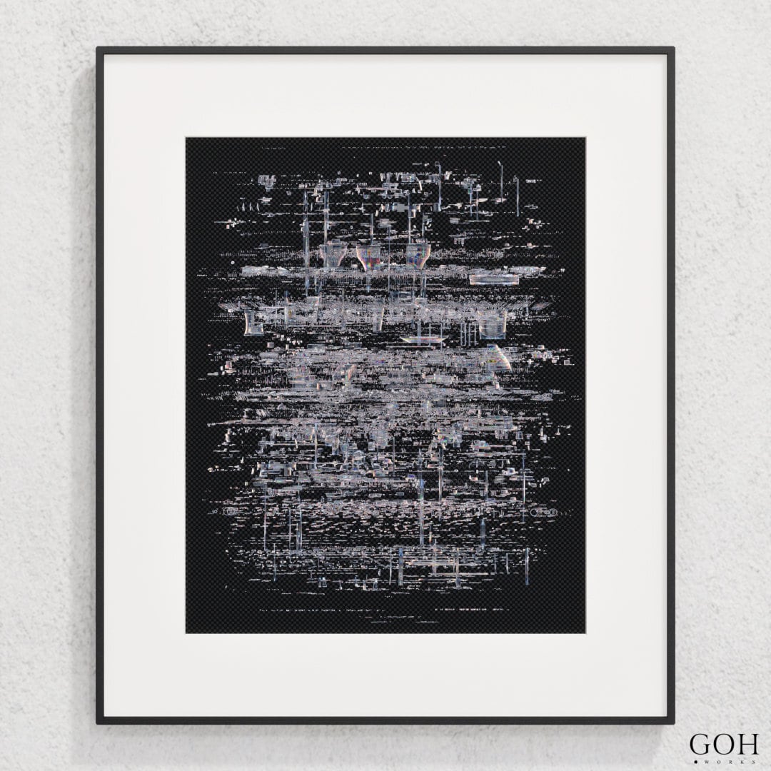 Blueprint - No.001, Type B / 額装済みのオリジナルアートプリント、原画、設計図、黒、CG