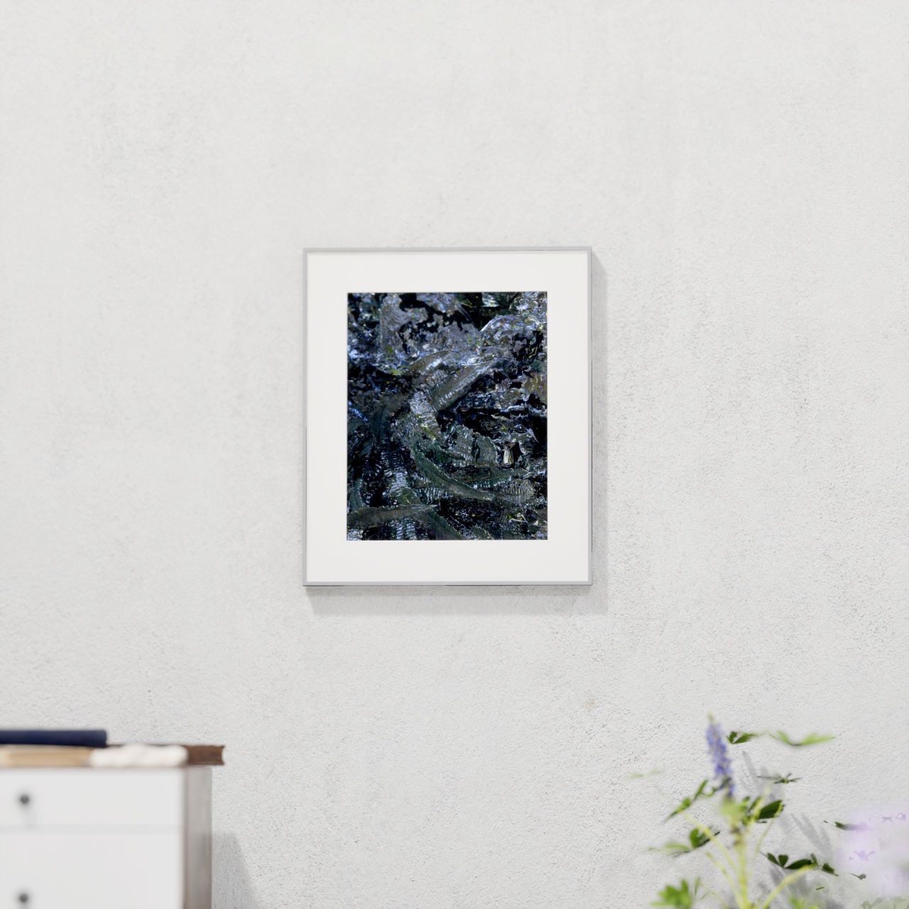 額縁の色は、黒とシルバーからお選びいただけます。(色は、壁面やお部屋にどちらが合うかでご判断いただくと分かりやすいと思います。額縁は厚みが 2cm 程度あり、横から見ると色による存在感がそこそこあります。