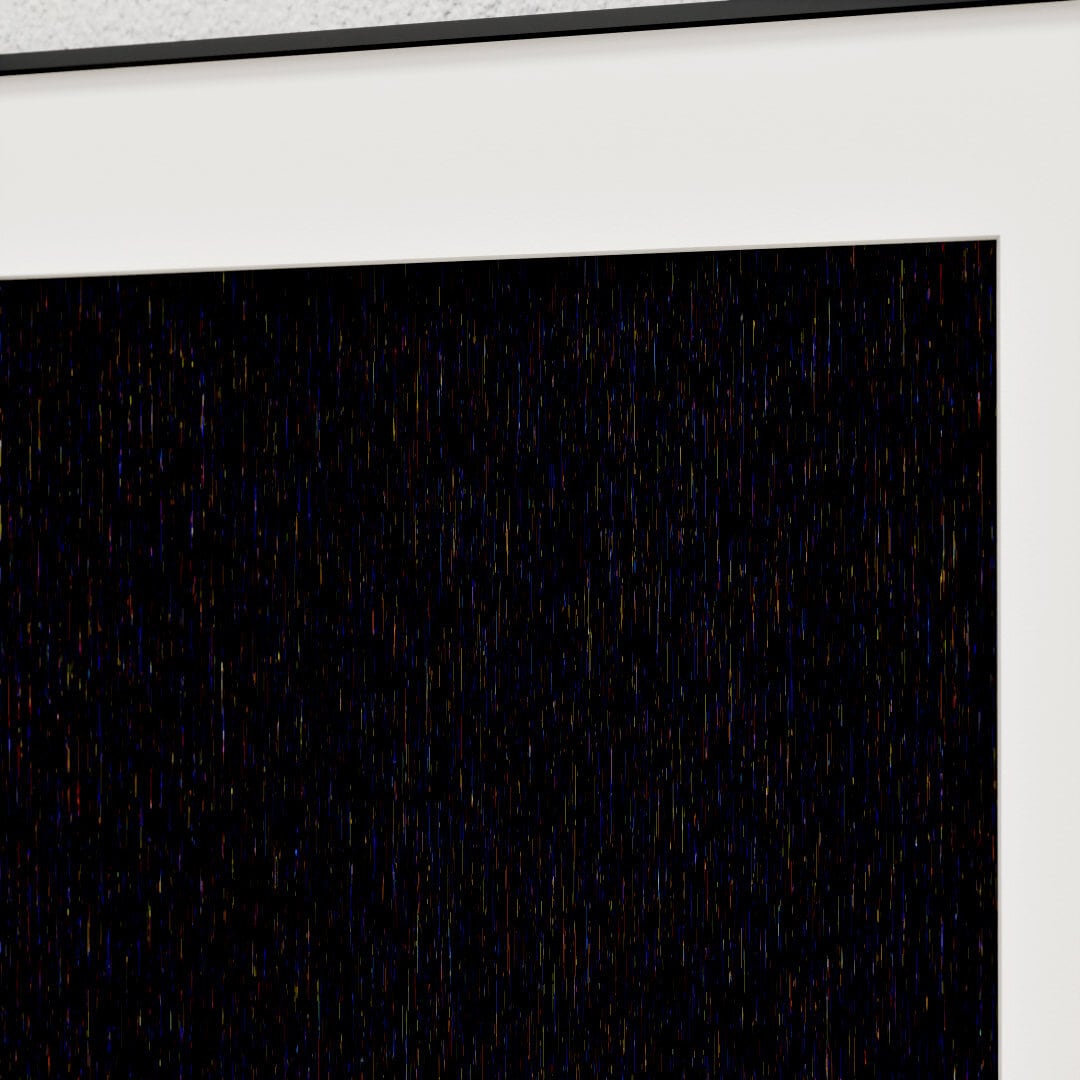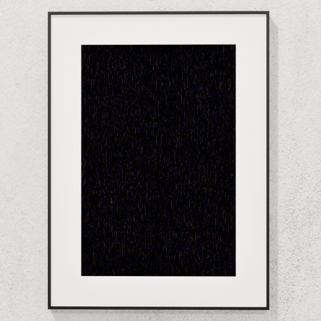 C++とOpenGLのプログラムで描かれた純粋な Generative Art 作品で、膨大な量の線で構成される線描画です。表現を華やかな視覚エフェクトで誤魔化さない、原初的な描画アプローチによる原理可視化性を重視した「計算美学」の作品です。